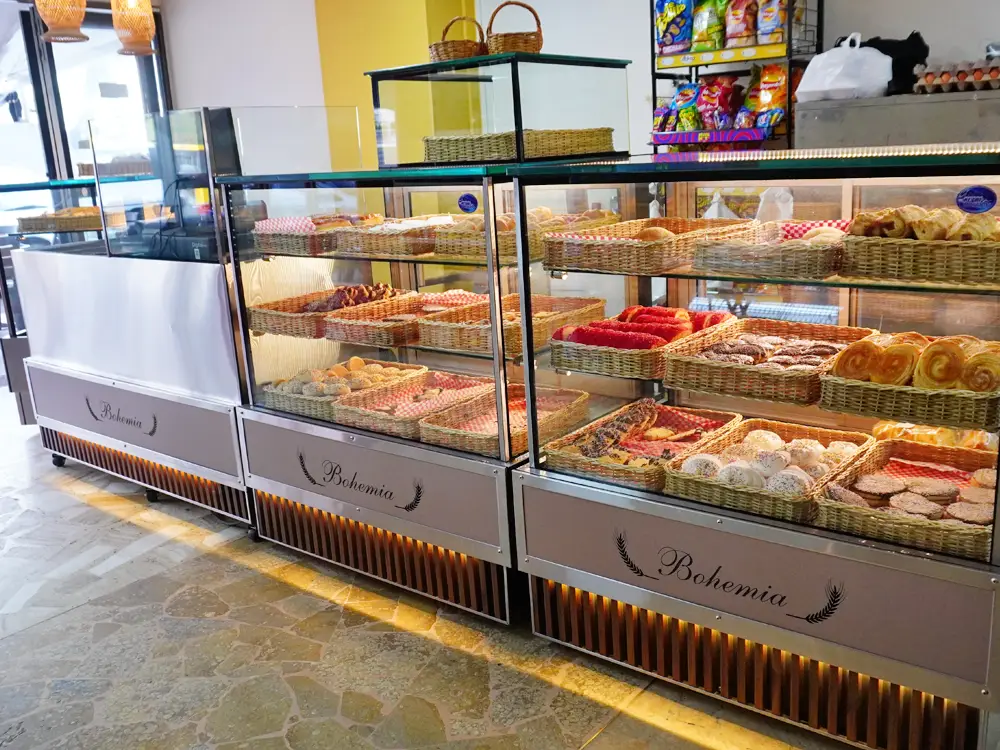 Las vitrinas diseñadas para la Panificadora Bohemia, son el ejemplo perfecto de cómo el diseño moderno y la funcionalidad se unen para crear espacios memorables. Nuestras vitrinas cuenta con luces LED que le dan ese brillo especial a tus productos y el toque único de tu logo grabado en estas, tu negocio no pasará desapercibido 👌🏻.